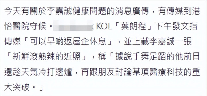 不过只是虚惊一场,因为有香港网红在3日公布李嘉诚的近照,表示他手舞足蹈和朋友打火锅。